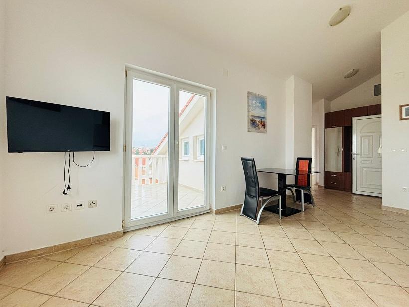Składa się z korytarza, 2 sypialni, kuchni z jadalnią, łazienki oraz 2 tarasów, z których jeden wychodzi na Novalję, a drugi na Velebit.