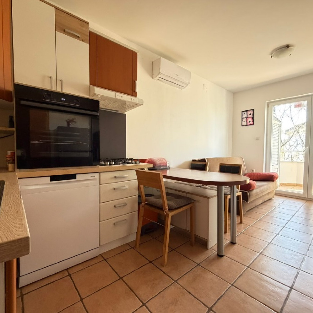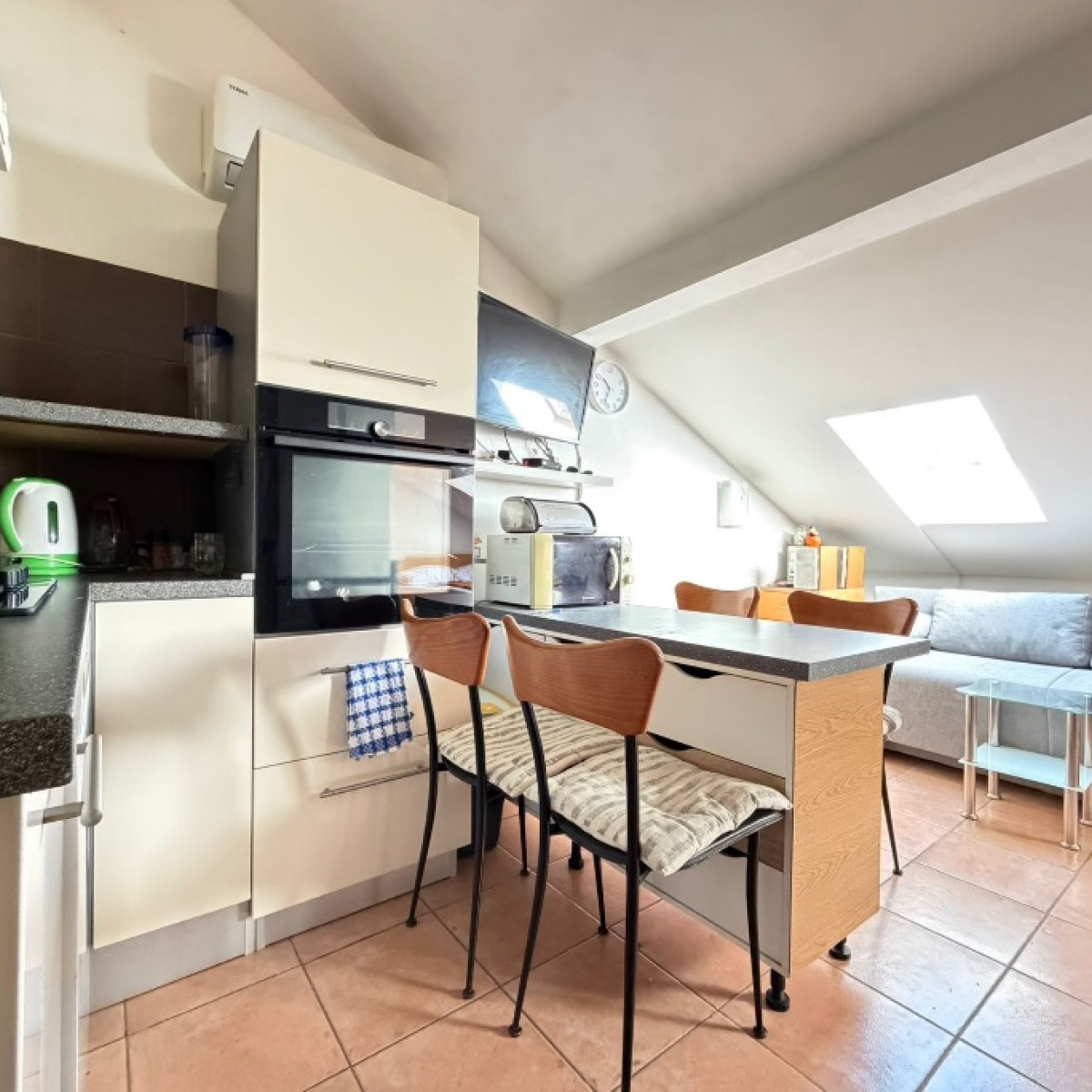 Jest umeblowany, klimatyzowany i posiada miejsce parkingowe.