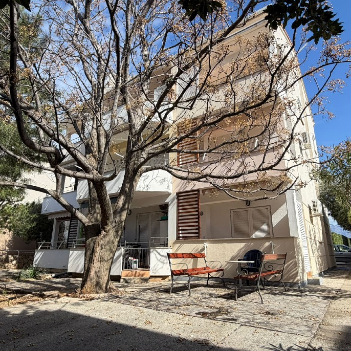 WygasaNa sprzedaż dwa apartamenty, 2. piętro i poddasze, w budynku ze wspólnym ogrodem pełnym zieleni, w Novalji na wyspie Pag.