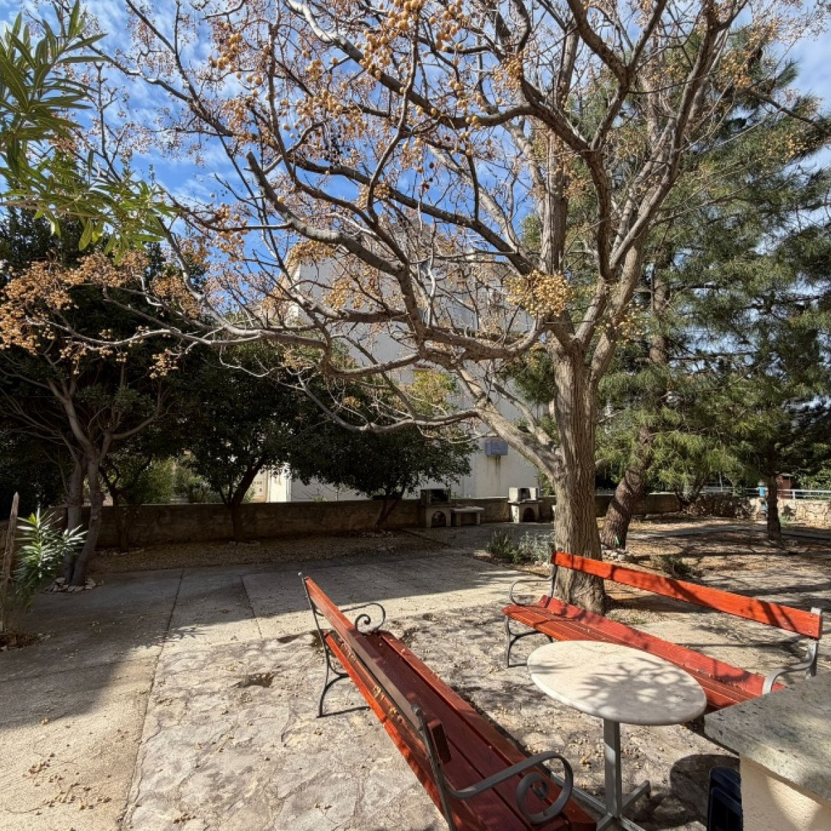 Sosny i figowce zapewniają cień, który chroni go przed słońcem. Dziedziniec to wyjątkowe miejsce do spotkań towarzyskich, relaksu i rozrywki.