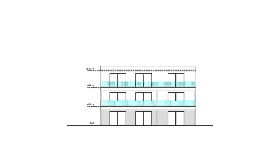 Apartament znajduje się na 1. piętrze (lewa strona). Będzie się składał z salonu z kuchnią i jadalnią, jednej lub dwóch sypialni, łazienki oraz dużego tarasu z bezpośrednim widokiem na morze z salonu. (Istnieje możliwość dostosowania układu mieszkania w trakcie budowy).